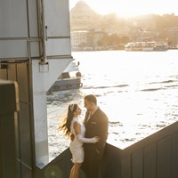 Bu özel gün, İstanbul Boğazı'nın büyüleyici manzarasına karşı ev sahipliği yaptı. Tarihi yarımada, mimarisi ve büyüleyici bahçesiyle çiftimize benzersiz bir düğün deneyimi sundu. Boğaz'ın kıyısında yapılan bu çekimde, çiftimiz romantizmin doruklarına ulaştı. Denizin huzur veren dalgaları, güneşin batışındaki ışıltısıyla birleşerek, gerçek bir aşk masalını yansıttı.