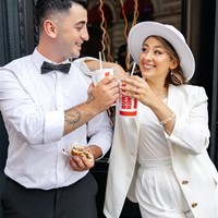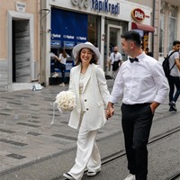 İstanbul'un merkezinde, Beyoğlu'nun modern atmosferi ve şehrin karakteristik dokusu ile çiftimiz, şehrin enerjisiyle çevrili bir düğün deneyimi yaşadı. Sokak sanatçılarının müziği, şehrin gürültüsü ve mimarisinin eşsizliği, bu çekimin içerisindeki romantizmi ve eğlenceyi birleştirdi. Şehrin ritmiyle dans eden çiftimiz, unutulmaz anılar biriktirdi.